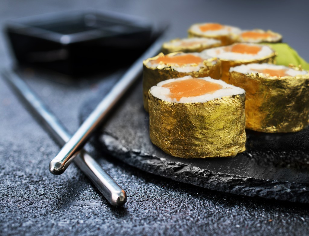 O Iroha Sushi, de São Paulo, desenvolveu um produto que tem atraído os amantes do sushi. O sushi de ouro é uma iguaria feita com ouro comestível 24k.