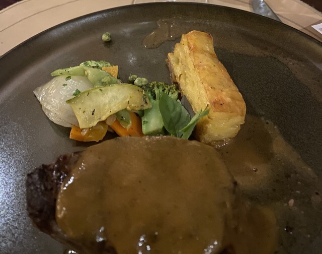 Nessa primeira edição ( março / 21), os chefs criaram versões atuais da sopa Saint Germain de ervilhas e croûtons para o couvert, seguida por primavera de legumes com bisque de crustáceos e salmão Imperial com Beurre Blanc, aspargos e couve-flor Dubarry como entradas. Como prato principal, tornedor de filet mignon à la Richelieu com molho de foie gras, batatas Pompadour perfumadas ao molho com sabor de trufas. Esse foi, sem dúvida, um ponto alto do jantar que harmonizou muito bem com vinho tinto francês.