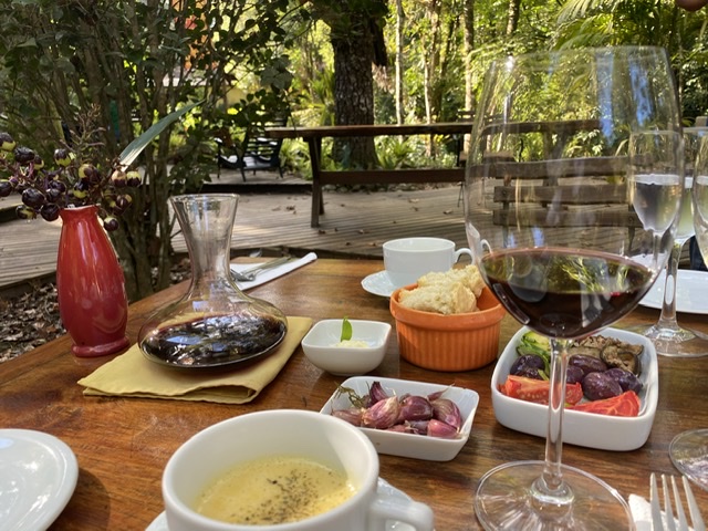 O Rosmarinus tem linda e ampla área ao ar livre – fica num terreno de 5 mil m2, cercado por um ribeirão que convida os visitantes para um almoço ao som das águas. A casa tem ainda um espaço fechado para noite, devido ao clima frio da região, que segue todas as regras de distanciamento e higiene.