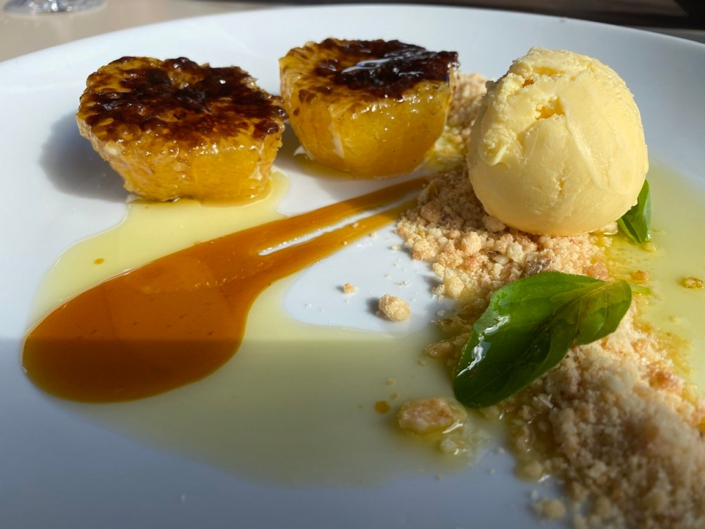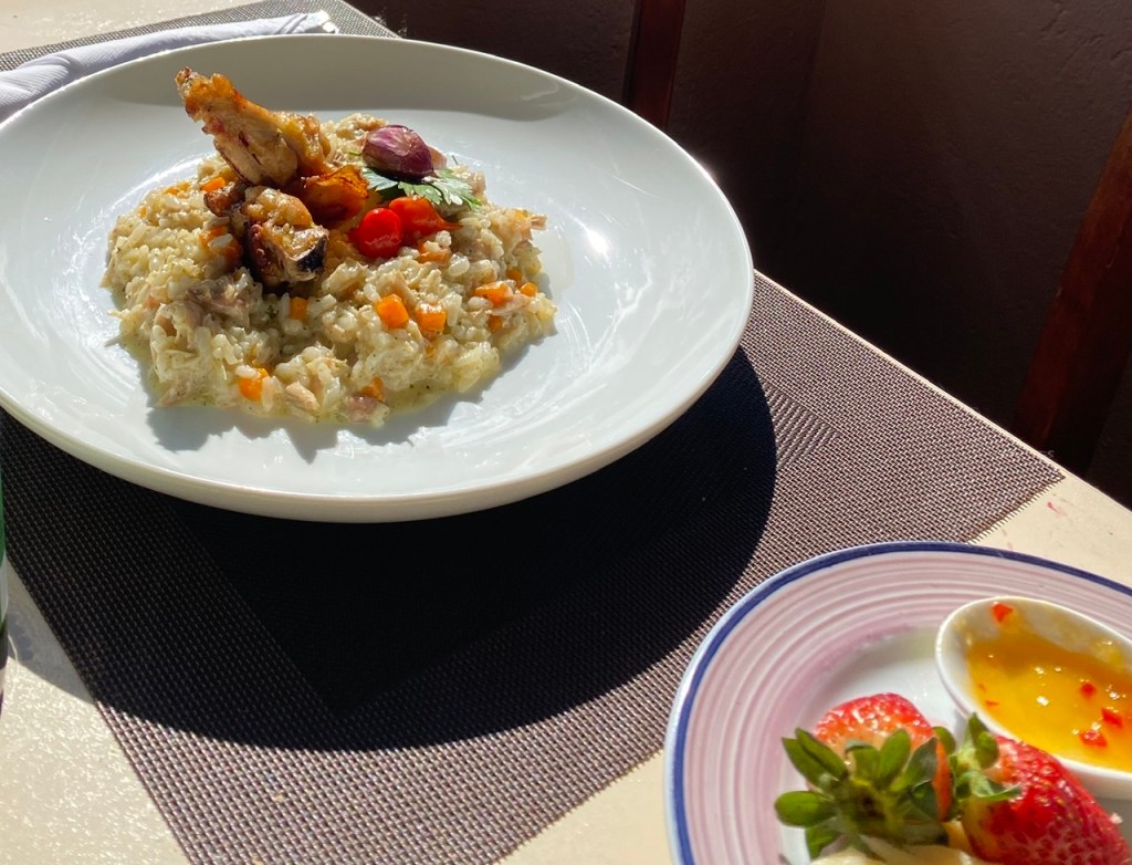 Como prato principal recomendamos o risoto de galinhada e o tornedor com purê de banana da terra. Para finalizar não deixe de provar o doce de laranja flambada com melaço de cana, sorvete e farofa.