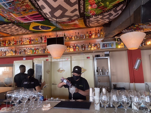 A casa tem ampla área ao ar livre e o clima descontraído reúne gastronomia e aquela vibe carioca de pós-praia.