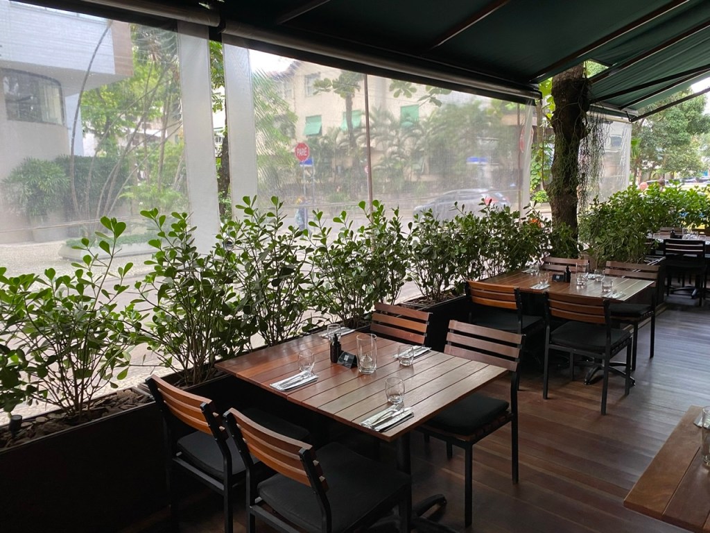 Além de varanda e amplo salão interno, vale destacar o forno a lenha construído para execução de algumas receitas que fica em área bem central do ambiente, e o grande balcão de bar de onde saem coquetéis ( não deixe de experimentar o Kir royal).