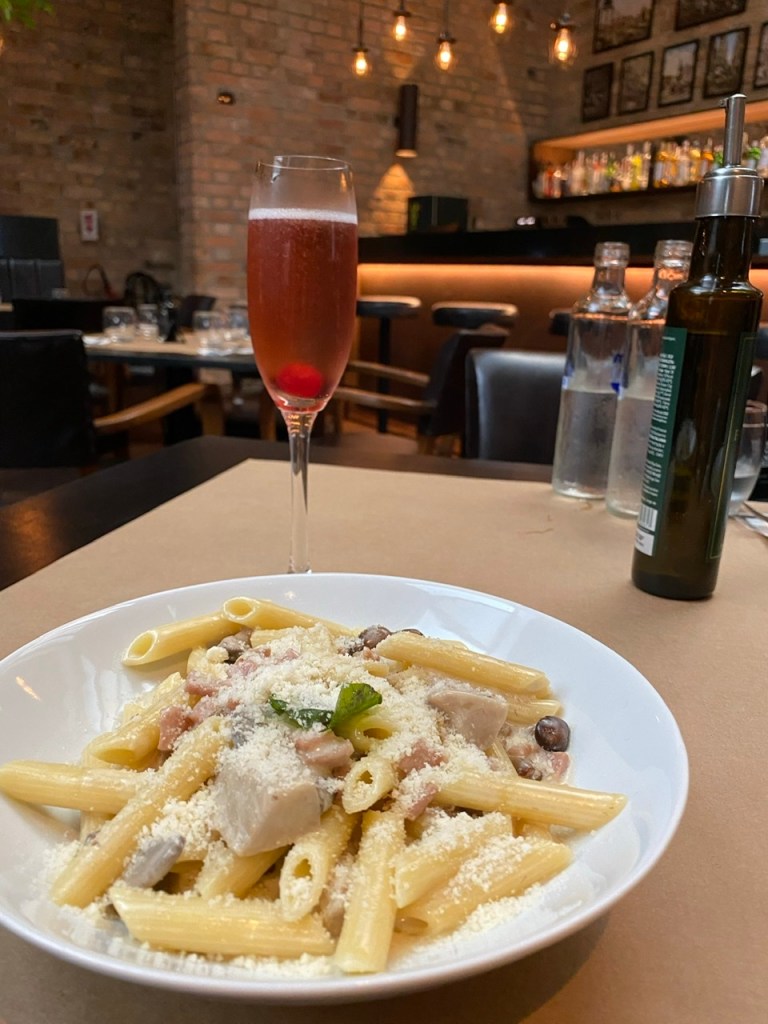 Além dos paninis e pizzas, massas consagradas das casas Fasano estão no cardápio ( adoramos penne com creme de cogumelos e presunto cru, e o penne alla vodka), além de algumas opções de hambúrgueres, bruschettas, saladas e não deixe de pedir as sobremesas tradicionais da casa – destaque para o tiramisú, bolo de coco com chantilly sem açúcar, e a Piadina com creme de avelã e morangos.