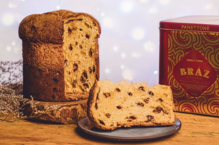 A pizzaria Braz (RJ) apresenta o Panettone Bráz tem receita exclusiva e apresenta massa de fermentação natural úmida e sabor suave. É generosamente recheado com gotas de chocolate e com laranja italiana cristalizada. Na finalização, recebe uma delicada cobertura de amêndoas. O Panettone Bráz vem em uma lata decorada (R$ 124 – 1kg) e, para o presente ficar ainda mais especial, este ano ele vem acompanhado de uma ecobag.