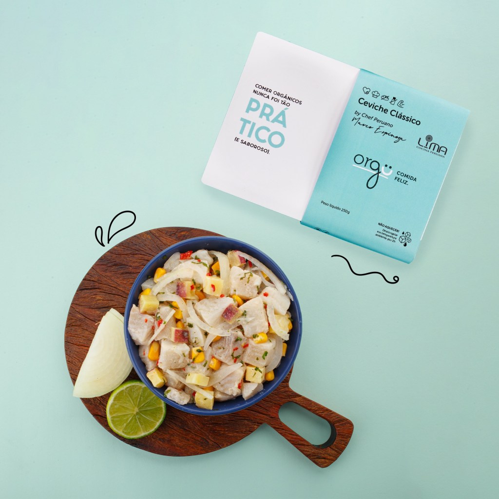 A parceria de Espinoza com a Orgü faz parte da série de collabs da foodtech com chefs renomados, que vão apresentar pratos originais. O ceviche ultracongelado estreia essa collab.