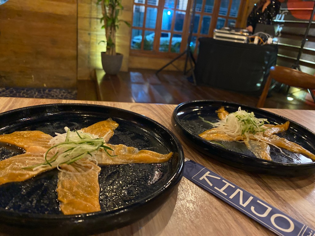 O cardápio da casa é amplo e variado. Para começar, sashimis servidos com 4 peças, e Classic Nigiris, servidos com 2 peças. Destaque para o Sashimi Moriawase – degustação de variedade de peixes e frutos do mar. Os tradicionais Ceviches também são boas opções, como o Clássico Kinjo – peixe branco, lula, leite de tigre e batata camote; e o Kunsei – atum na brasa, cebolinha, nori crocante e molho ponzu.