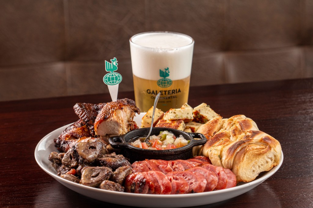 As sugestões de petiscos são também muitas na galeteria Continental. Feitas na brasa, pode-se escolher entre as variadas opções, como linguiça de pernil, coração de frango, pão de alho, ou apostar nas receitas de quem gosta mesmo é de uma pedida tradicional feito os bolinhos de bacalhau ou o filé aperitivo.