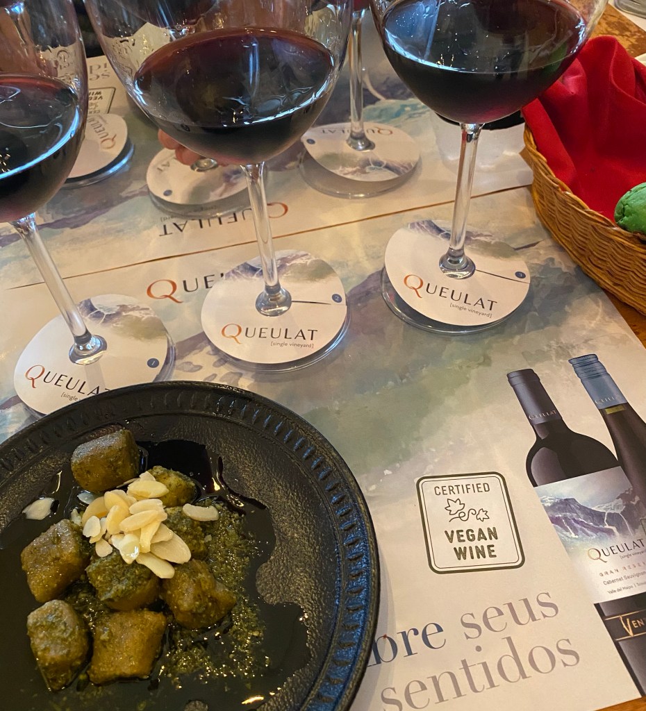 Os vinhos Queulat são os Gran Reserva da Ventisquero e agora são veganos – os vinhos não tiveram contato com ingredientes de origem animal em sua produção. São ao todo seis vinhos que compõem a linha Queulat e participamos de uma degustação com menu vegano.