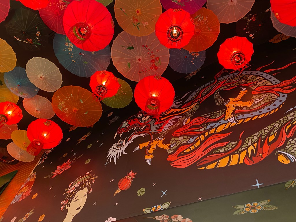 Para começar, uma degustação (R$69 – para duas pessoas) que inclui dois rolinhos primavera de camarão com molho cremoso de tamarindo, duas asinhas de frango e dois jin bao – pão torrado e cozido ao vapor recheado com porco assado cantonês e vegetais na wok acompanhado de molho hoisin.