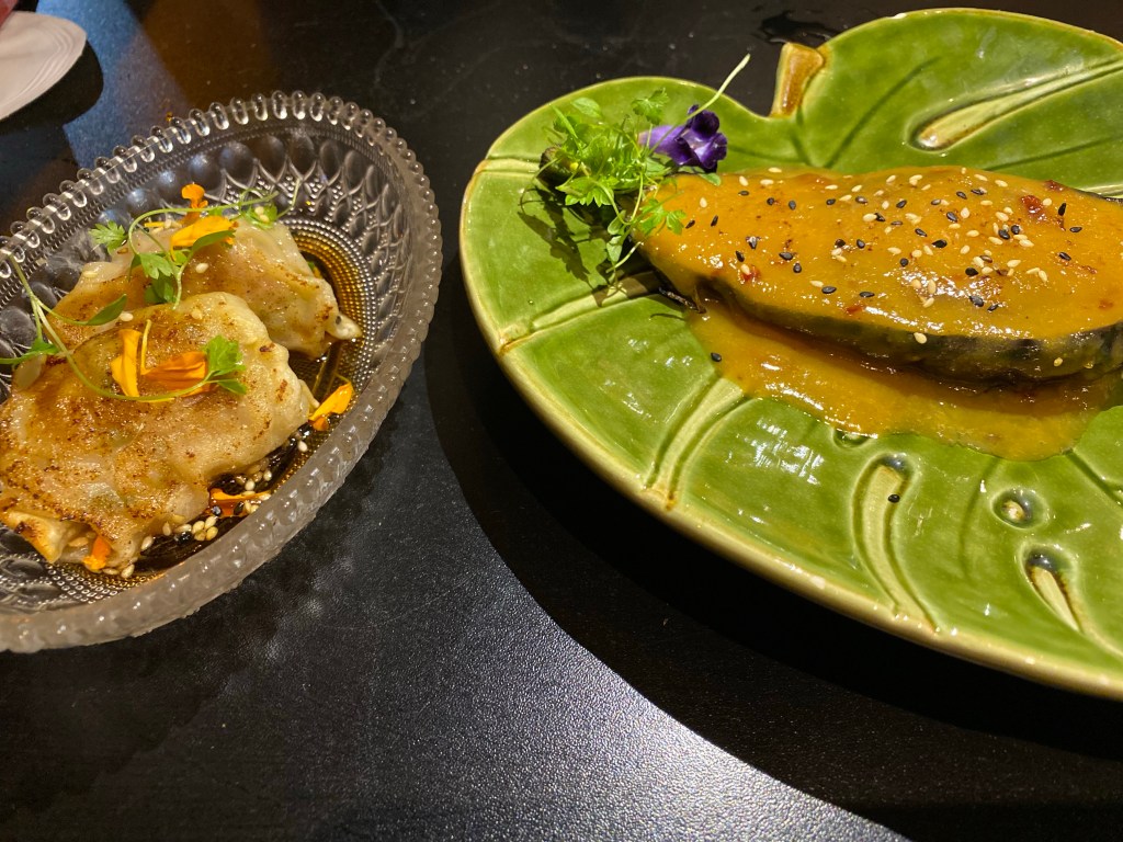 O restaurante também conta com criações da chef Ludmilla Soeiro. De início, vieiras grelhadas com bolinho de arroz oriental e holandaise de mel e trouxinha Thai de frango com abacaxi e molho curry. Dos pratos assinados por Ludmilla, destaque para o salmão marinado no teriyaki de laranja e tagliatelle com infusão de raiz forte ao leite, camarão de alto mar VG com purê de ervilhas com wassabi, alho tostado e palha de batata doce e arroz de frango oriental, cubos de peito de frango refogados no alho, cenoura picada e molho curry, gohan e amendoins assados e picantes.