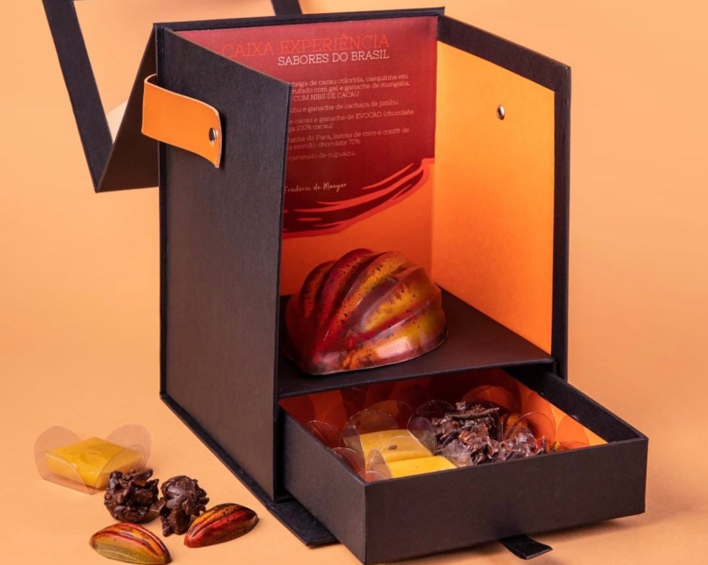A Frédéric Epicerie criou para essa Páscoa a caixa Sabores do Brasil. Numa embalagem especial o cliente recebe um ovo de cacau (180g) com pintura em manteiga de cacau colorida, casquinha em chocolate Belga intenso 70% trufado com gel e ganache de mangaba, cravejado com nibs de cacau; 4 bombons com gel de umbu e ganache de cachaça de jambu; 4 bombons com gel de polpa de cacau e ganache de Evocao (chocolate belga 100% cacau); 8 Mini rocher de castanha do Pará, lascas de coco e confit de laranja Bahia envolto chocolate 70%; e 4 balas de caramelo de cupuaçu. O valor da caixa é de R$390.