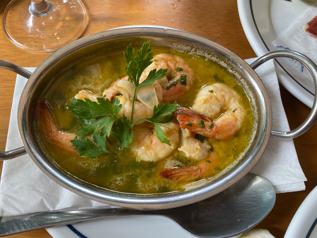 Para começar, a releitura do Gambas Al Ajillo – típico camarão ao alho espanhol, é uma boa pedida. Em uma charmosa panelinha, a versão portuguesa chega com o fruto do mar regado no azeite extra virgem, bastante alho, manteiga, pimenta e coentro, acompanhado de pão artesanal da casa.