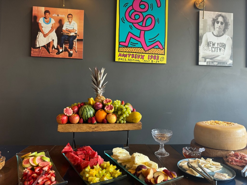 Entre os itens de café da manhã, frutas – melancia, uva, ameixa, kiwi, carambola, goiaba, entre outras; queijos como parmesão, gorgonzola e gruyère; frios – presunto de Parma, peito de peru, salame, copa; e pães, como croissant, pão de forma e pão de queijo, além de requeijão e manteiga. Tem ainda bolo de cenoura e de laranja, salada de frutas, iogurte e granola. Os sabores, frutas selecionadas e frios variam semana a semana, para que o cliente possa ter experiências diferentes a cada visita.