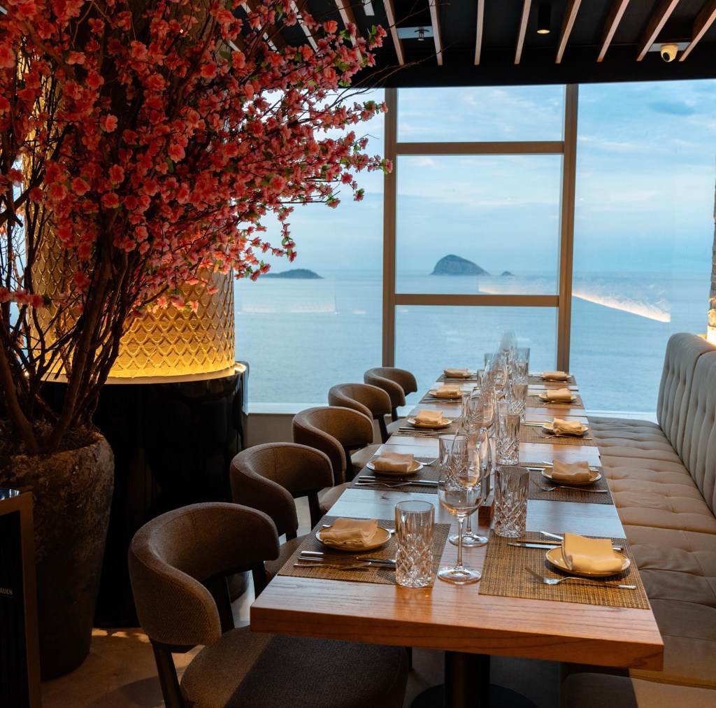 Com paredes envidraçadas que proporcionam uma vista panorâmica deslumbrante da praia de São Conrado e da encosta da Avenida Niemeyer, o Masi oferece uma experiência especial.