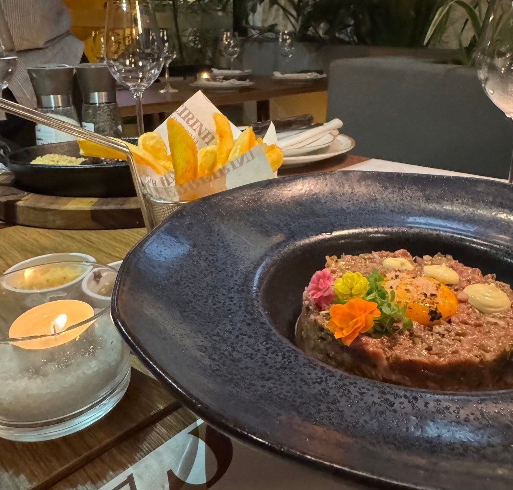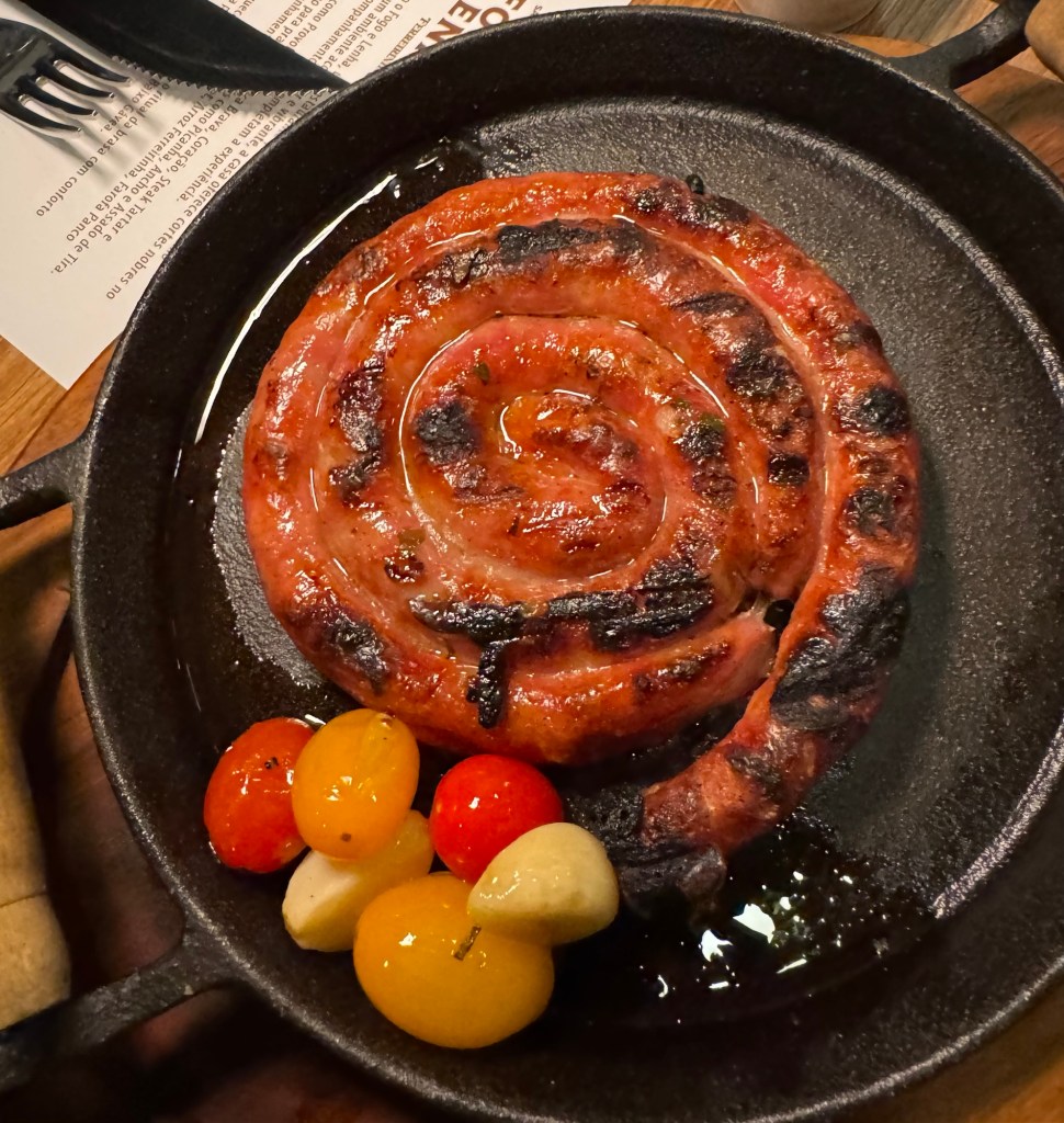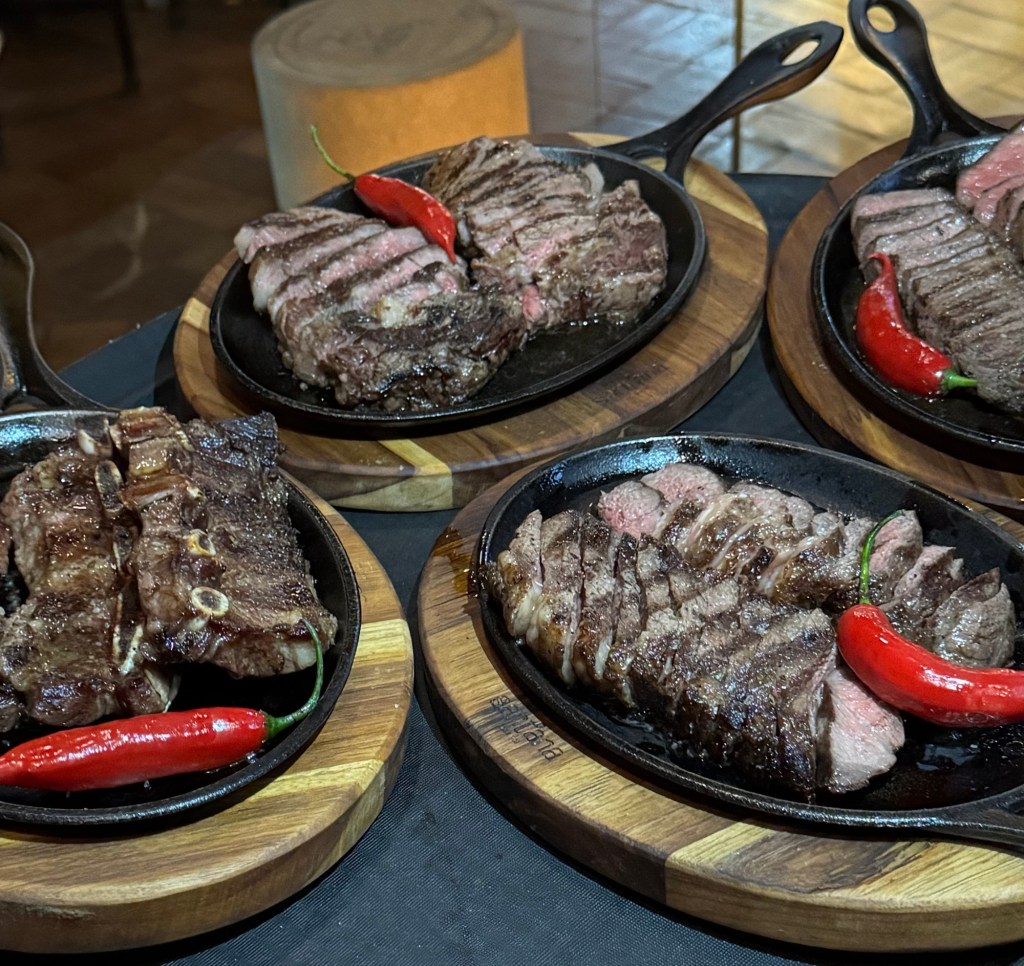 No cardápio, entradas como: Provoleta, Linguiça Brava, Coração, Steak Tartar e Ceviche que são boas opções para compartilhar. Para os pratos principais são destaque: picanha , bife ancho e assado de tira. Tudo servido com acompanhamentos como aligot, arroz Ferreirinha, farofa panco e legumes na brasa.