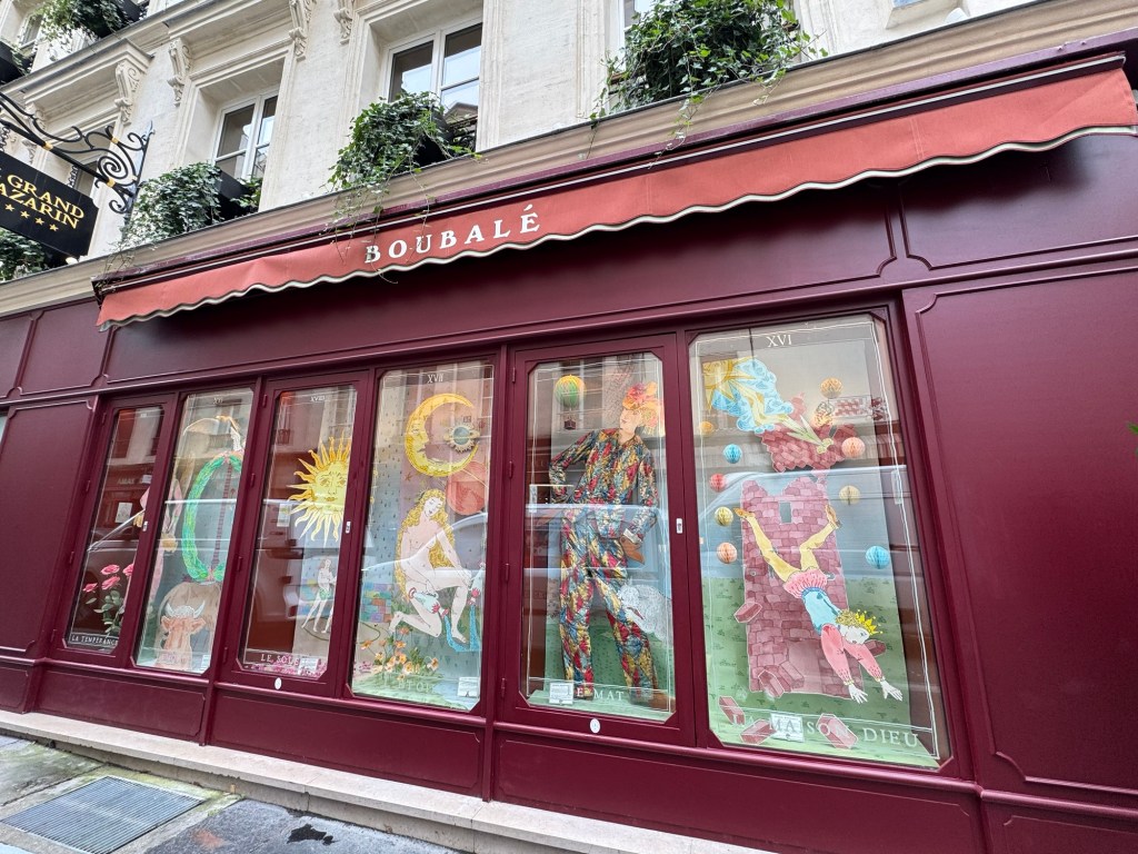 Essa nova instalação traz um jogo de tarô em tamanho real para as vitrines do Grand Mazarin, junto ao restaurante Boubalé. O trabalho meticuloso e poético do artista convida os passantes a descobrir um mundo mágico e luminoso, marcado pela assinatura única de Marin.