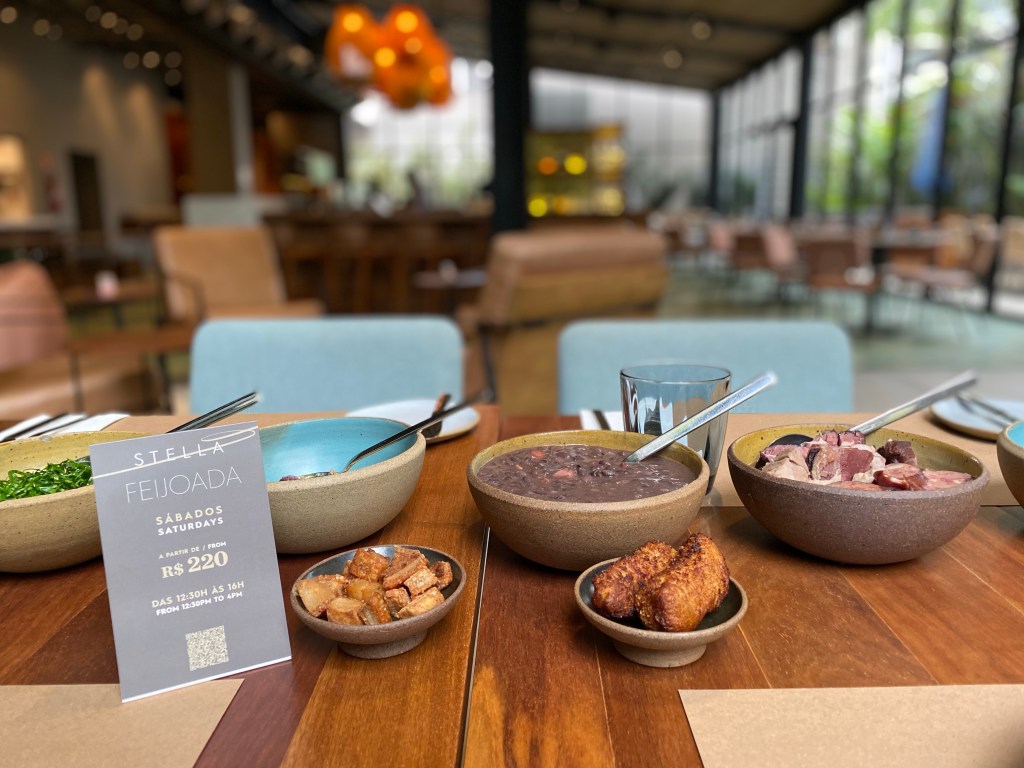O restaurante tem duas novidades na programação semanal. O Stella serve aos sábados a feijoada, sempre das 12h30 Ă s 16h. Pelo valor de R$ 220,00 (para duas pessoas), o serviço leva Ă mesa o tradicional caldo de feijĂŁo-preto com carnes, acompanhado de arroz, couve, banana frita, farofa e torresmo. O pedido inclui tambĂ©m água, suco e refrigerante. Se desejar, Ă© possĂvel incluir tambĂ©m bebidas alcoĂłlicas (cerveja e caipirinha) e o pedido sai a R$ 270 (para dois). Outra novidade recĂ©m-chegada por lá Ă© o almoço executivo. De segunda a sexta, das 12h Ă s 15h, prato principal e sobremesa saem por R$ 69,00. O cardápio muda mensalmente e traz sempre trĂŞs opções para a etapa principal (incluindo uma vegetariana) e duas doces.