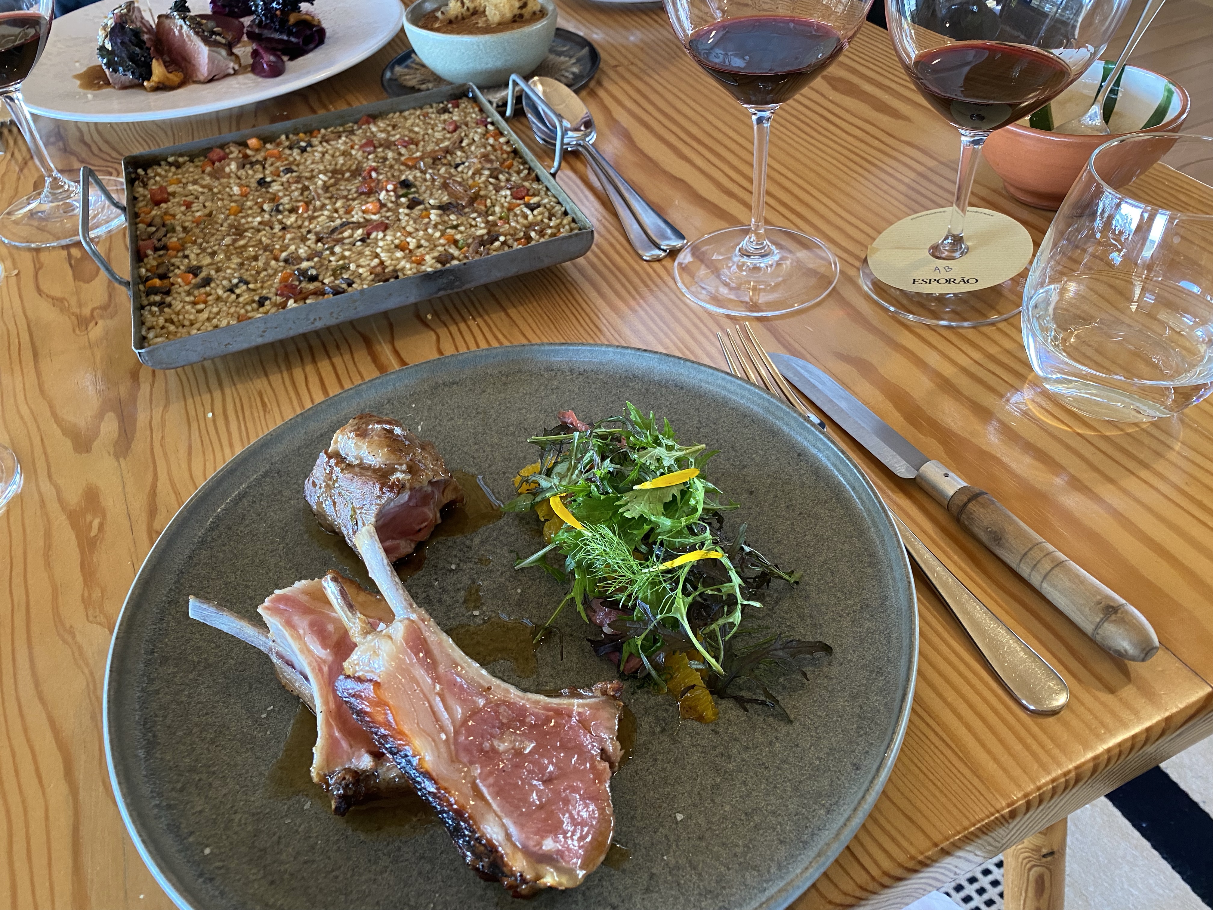 Durante um almoço com vista para as vinhas, o visitante pode optar por um menu de degustação de cinco ou sete momentos, harmonizado com vinhos. Há também opções a la carte, com couvert, entradas, pratos principais e sobremesas e o restaurante oferece refeições para crianças.