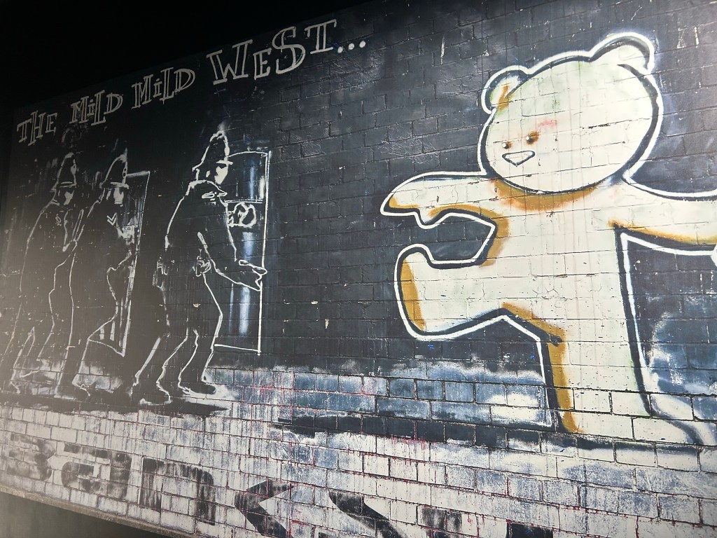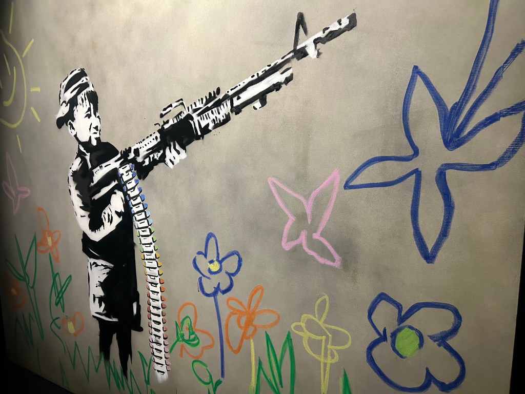 A arte de Banksy começou a surgir em Bristol no fim dos anos 1980 e seus murais são encontrados facilmente nas ruas de sua cidade. Sua crítica contra violência, guerra, desigualdades e o consumismo é muito marcante em suas obras.