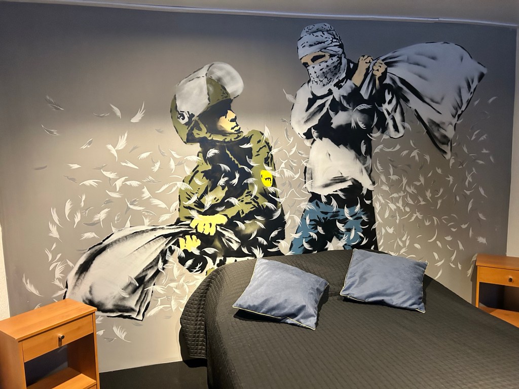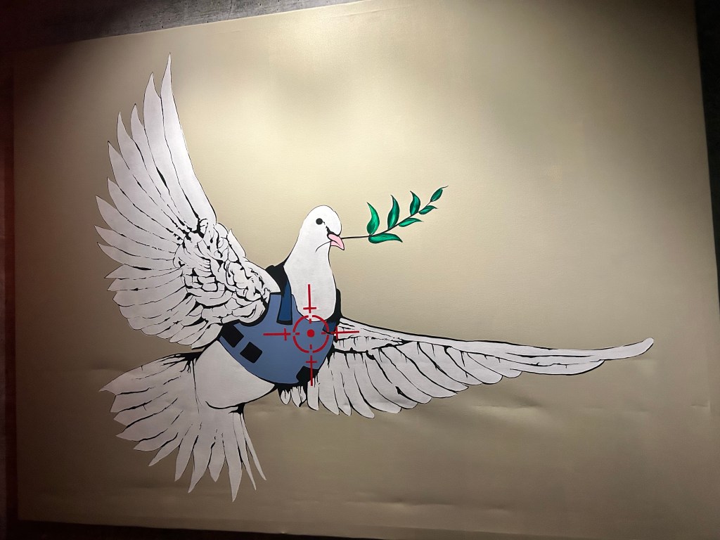 Banksy é o codinome de um celebrado artista de rua britânico que usa sua arte para questionar os valores da sociedade. Suas obras estão espalhadas por várias cidades do mundo, como Bristol, Londres, Los Angeles, Nova York, Paris, Nova Orleans, e também em países como Ucrânia e Palestina, entre outros.