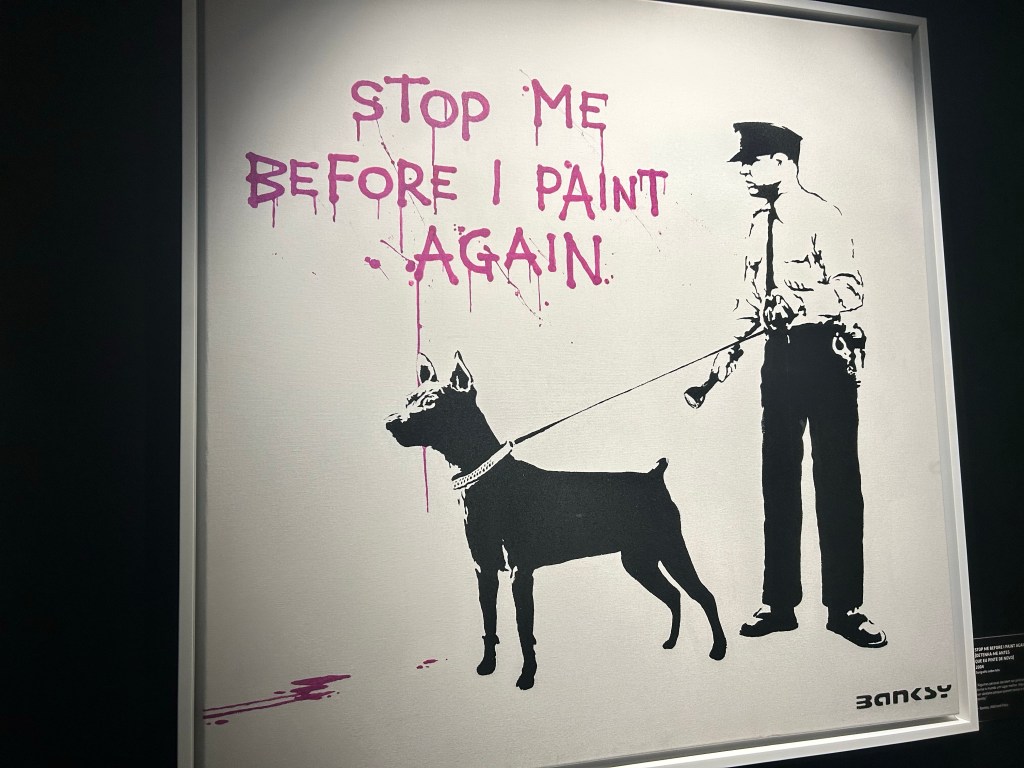 A exposição reúne mais de 150 obras do artista de rua, entre gravuras, fotos, litografias, esculturas, murais e instalações de vídeo, feitas especificamente para esta edição.