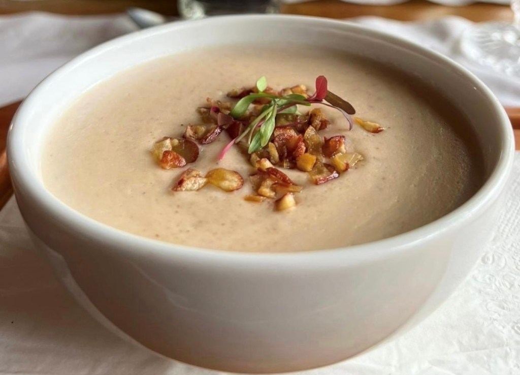 Elio Cucina Especiale, restaurante Cibo ( no hotel Quebra Noz) e Esquina do Djalma são algumas das casas participantes do festival. Fomos conferir os menus especiais do festival. No Elio Cucina são oferecidos uma entrada, um prato principal e uma sobremesa no festival: Caldo de pinhão com linguiça defumada e couve manteiga, Truta tropical – Filé de truta grelhado com crosta de ervas e pinhão acompanhado de purê de banana, e Paçoca de pinhão para sobremesa – Pinhão triturado e assado com açúcar e canela. No Cibo, o destaque é o Creme de Pinhão do Jordão – creme com pinhão e queijos da Serra da Mantiqueira. Já no Esquina do Djalma, a criação para o festival é a mousse de nutella com praliné de pinhão e pipoca de arroz selvagem.