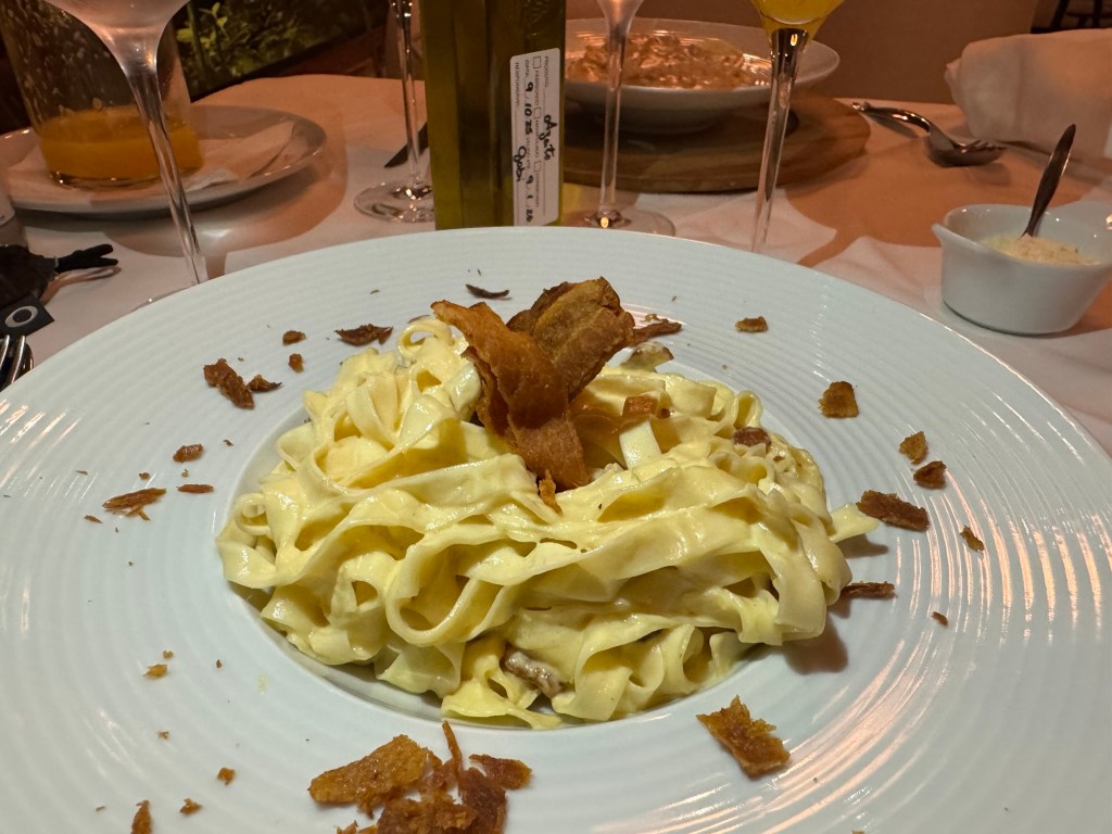 As massas e os pães são preparados à mão, diariamente na casa. Entre os destaques do menu estão o Spaghettoni Cacio e Pepe e o tradicional Carbonara. Outros clássicos italianos dividem espaço com criações autorais – inclusive nas sobremesas – que traduzem a visão contemporânea do chef, sempre com a premissa de ingredientes de alta qualidade.