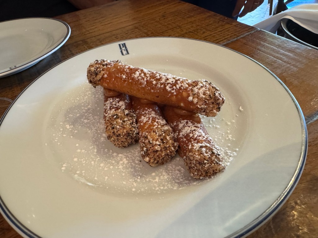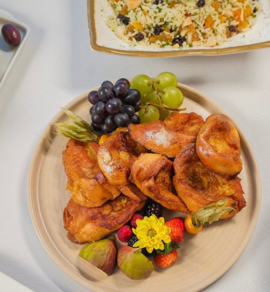 Os acompanhamentos também têm papel central na experiência. As farofas da casa — em especial a de pistache e a clássica Farofa Pobre Juan, com cebolas empanadas e fritas na manteiga — dividem atenção com as consagradas Papas Soufflé, batatas fritas duas vezes até alcançar crocância máxima. Para encerrar, sobremesas tradicionais como churros e panqueca de dulce de leche são destaques na casa.