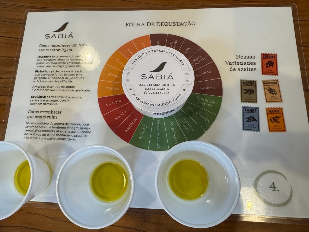 Com azeites de diferentes safras e perfis, a experiência Azeite Sabiá revela como um mesmo terroir pode originar óleos com personalidades distintas, variando em picância, amargor e persistência aromática.